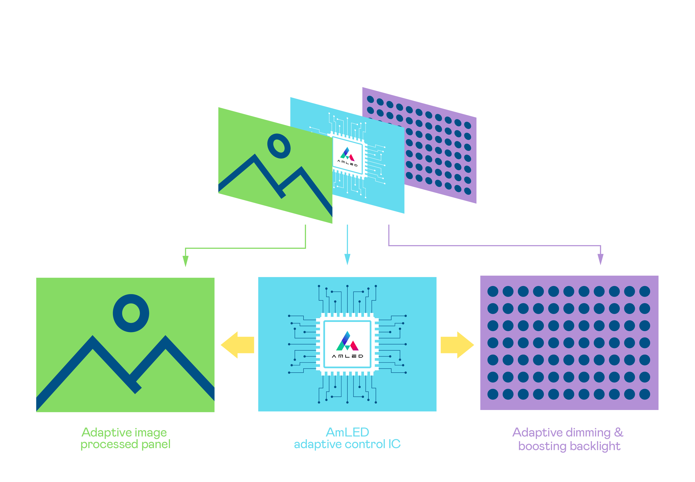 AmLED offers features such as higher power efficiency and low blue light. Compared to standard LED backlight display technologies, AmLED is regularly under local dimming status and consumes approximately 50% of the former's power; additionally, AmLED also features low blue light, satisfying the need for high standard specifications for eyecare.